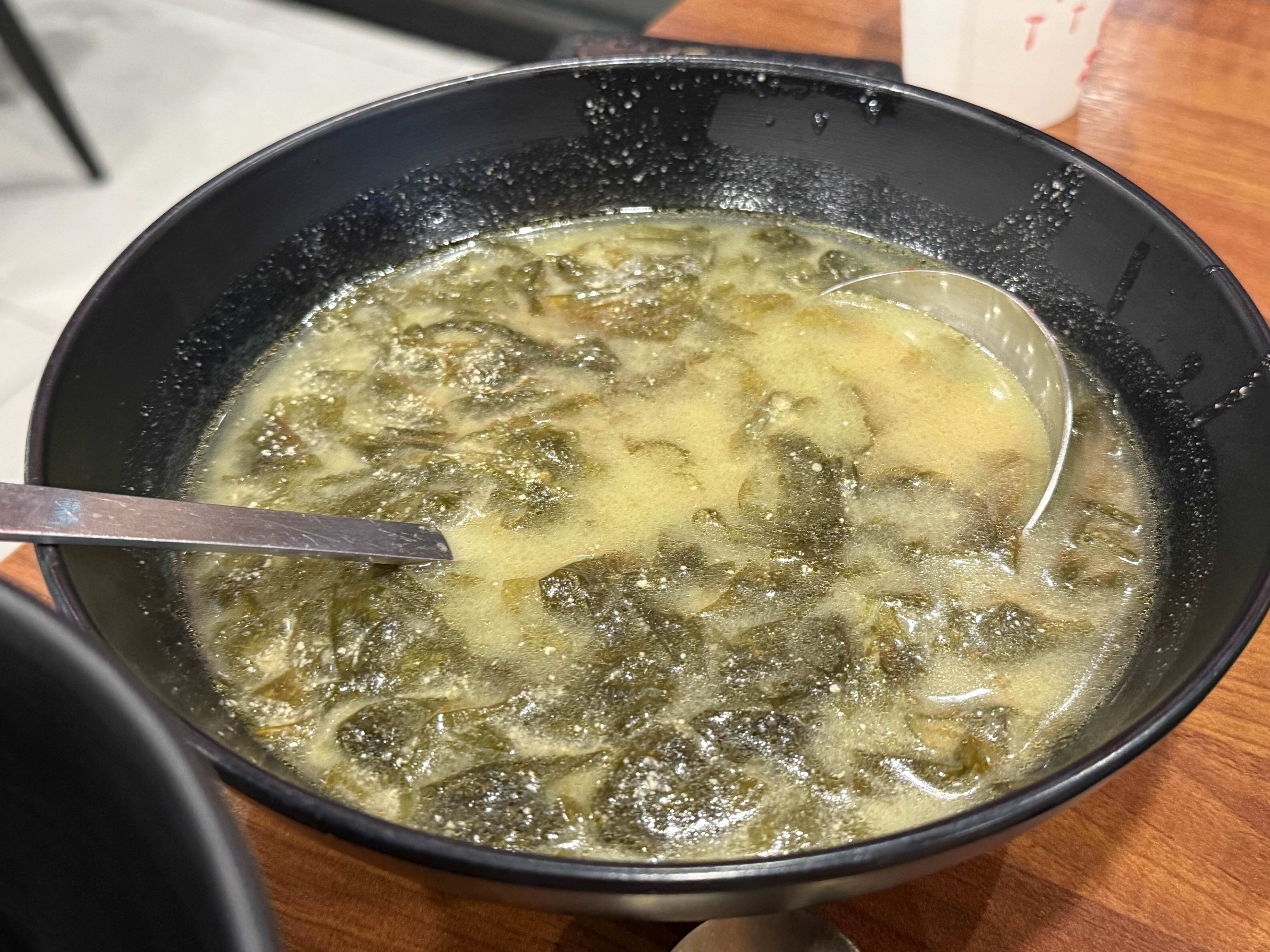 오래 오래 끓인 것 같은 미역국이 한 대접 나온다.