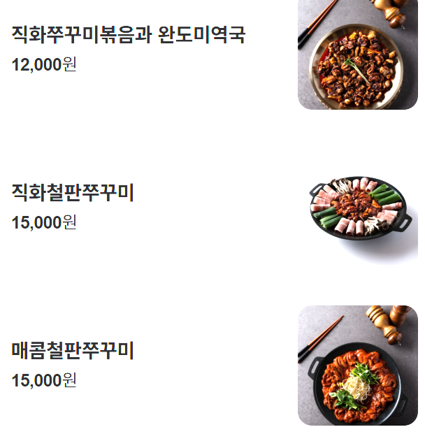 내가 좋아하는 것은 바로 1번 직화쭈꾸미볶음이기 때문.